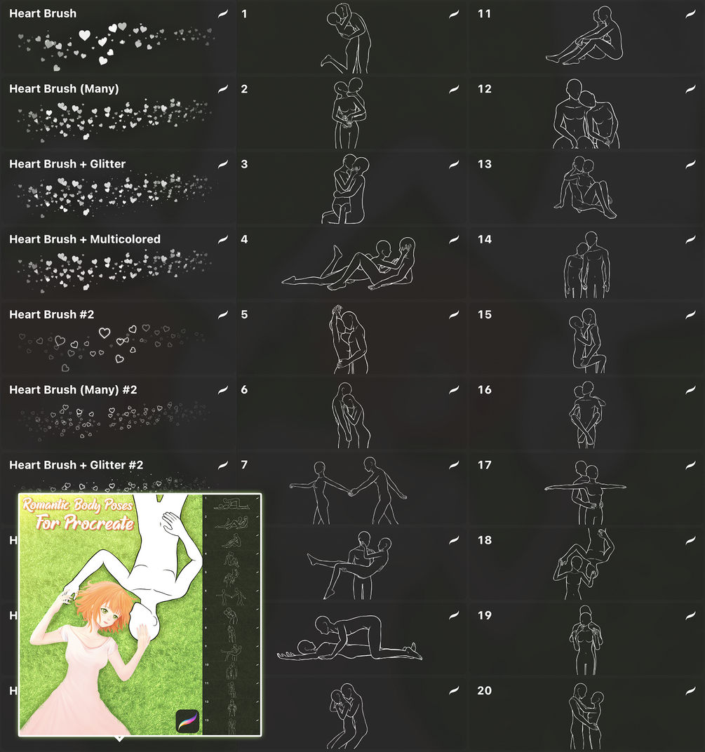 300+ Body Poses Pack for Procreate, Photoshop | Male and Female poses stamps (Dynamic, Romantic and so on)