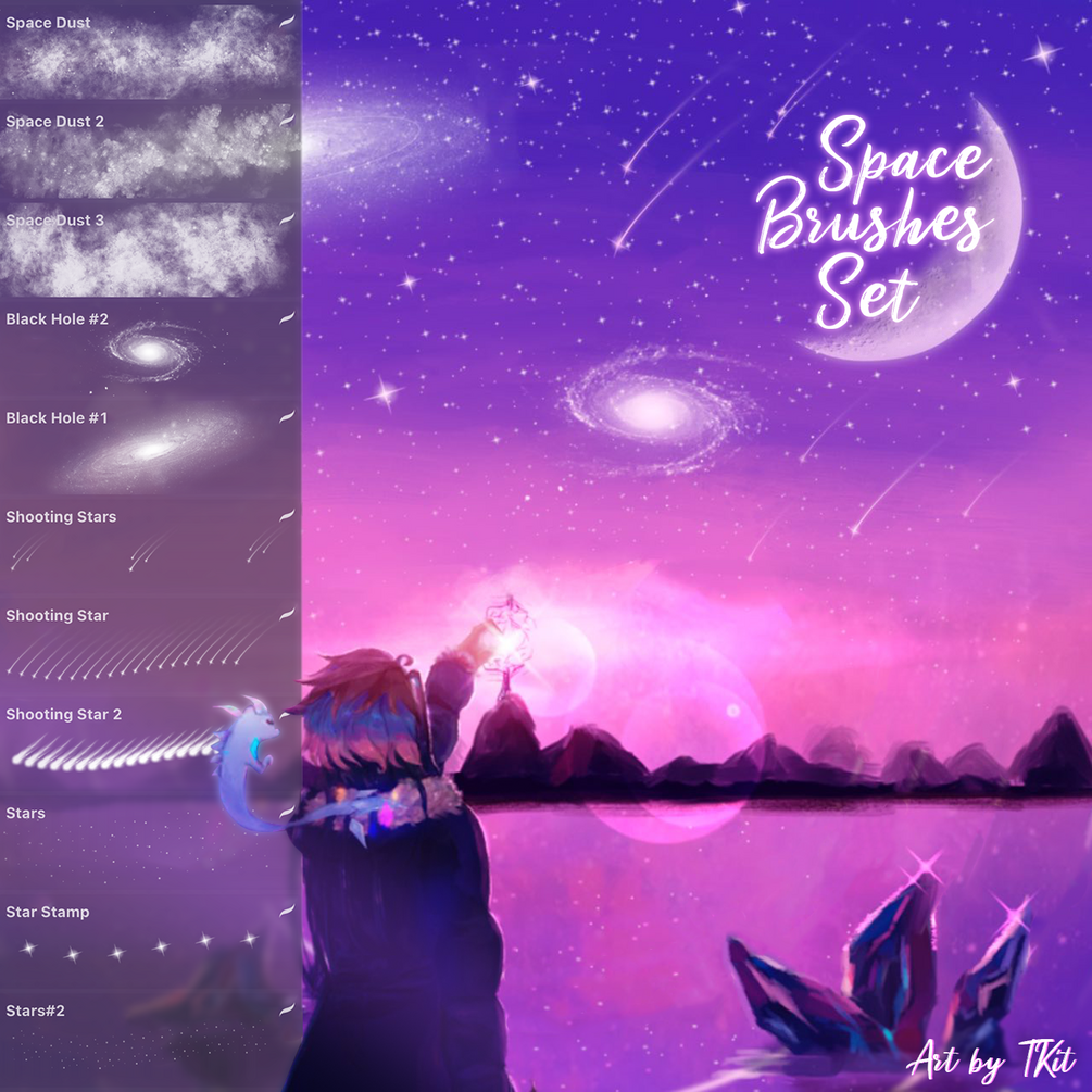 This brush set will help you create a whole cosmos in your drawings. There are 20 brushes in this set.