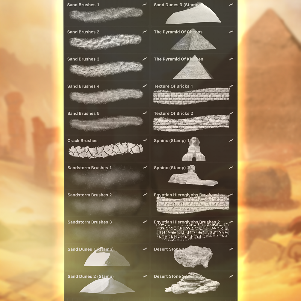 Egypt Brushes Set (desert, sand, pyramids, sand dust and so on) for procreate