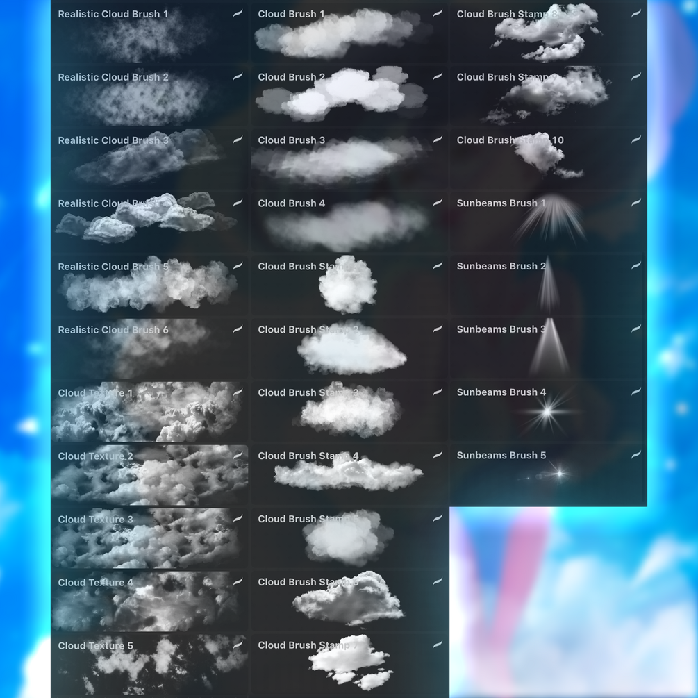 Cloud Brushes set (Cloud Brushes, Texture, Stamp and so on) for Procreate