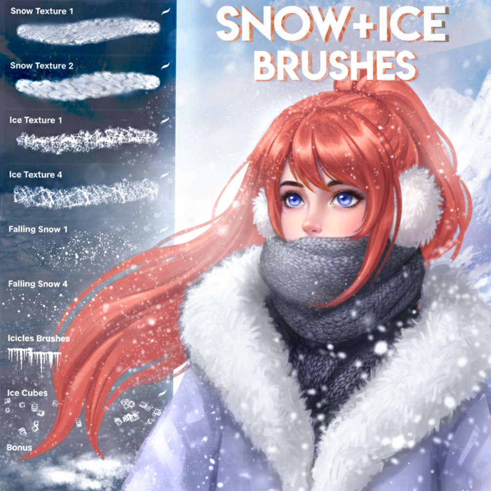 There are 10 brushes in this free set, they will help you to draw ice, snow, falling snow, ice texture, snow texture and so on❄🧊
