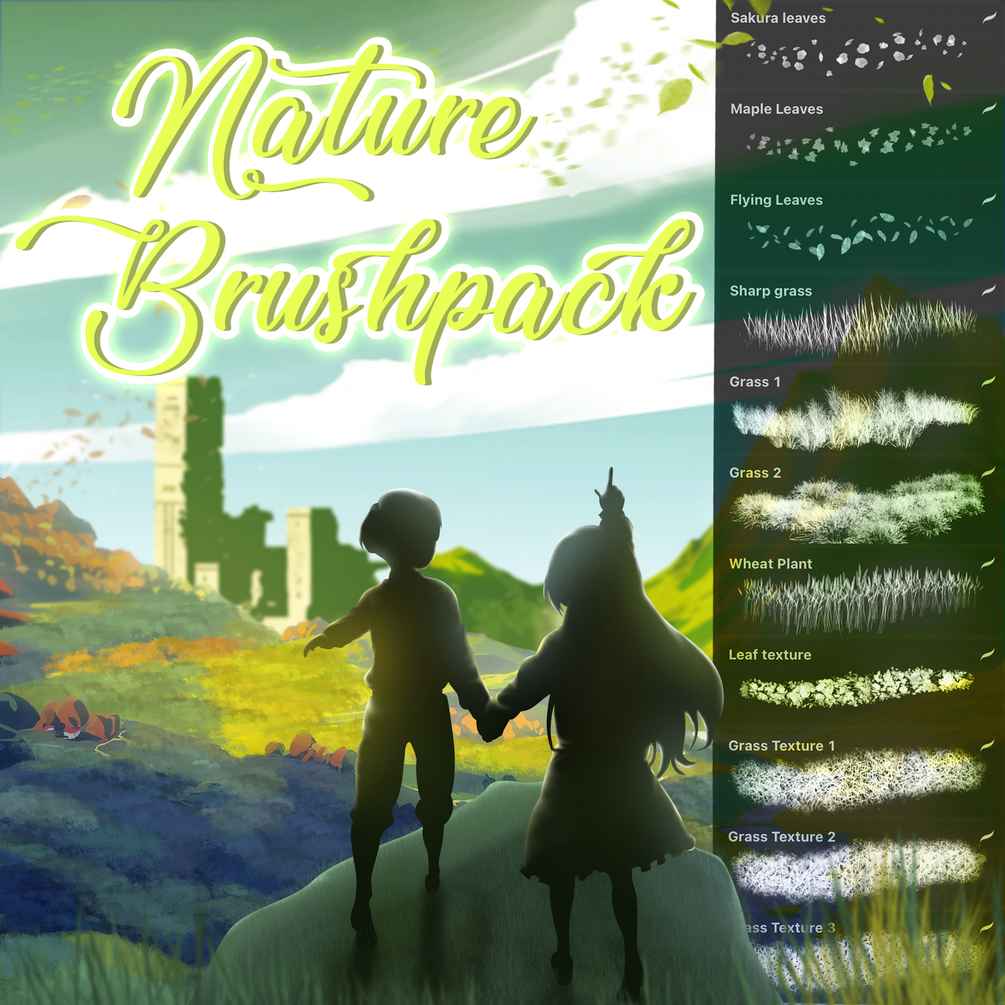 There are 6 brushes in this free set, they will help you draw beautiful sakura foliage, maple foliage, grass, trees, tree bark texture, and so on🌿🌳