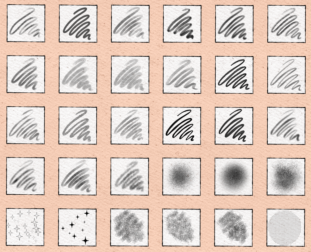 Made for any artistic style, this diverse set of 70 brushes offers everything you need: Soft Sketch and Smooth Line Brushes, Rich Marker Brushes, Gentle Skin and Coloring Brushes, Elegant Ink and Watercolor Brushes, Blenders, and unique Halftone & Tartan Textures. Perfect for both beginners and seasoned artists.