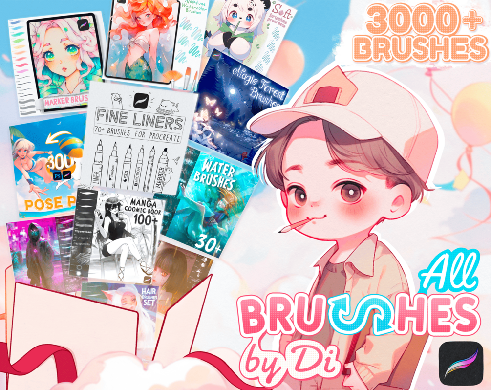 Over 3000+ Procreate Brushes by Di | Whole Store Bundle (Textures, Stamps, Brushes)