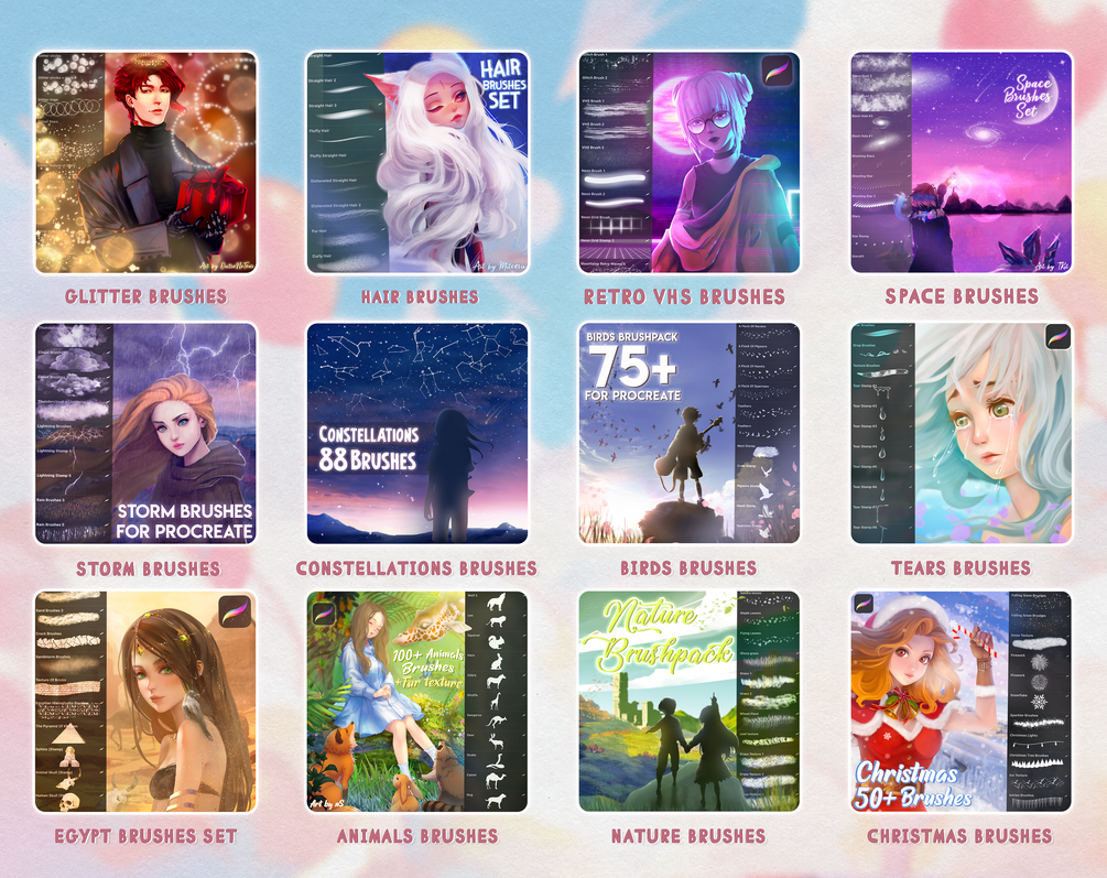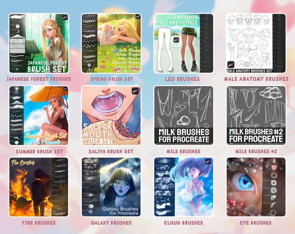 Over 3000+ Procreate Brushes by Di | Whole Store Bundle (Textures, Stamps, Brushes)