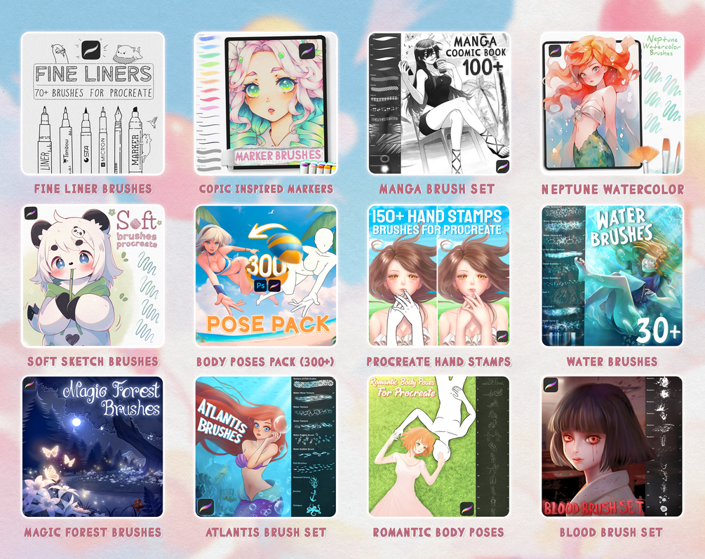 Hello! I've combined all my brush sets into one massive bundle – over 3000 brushes for Procreate. It includes every set available in my store. Explore each individual set within the bundle in my shop for full details. With this bundle, you save over $120 (do the math yourself). Upgrade your creative tools today!