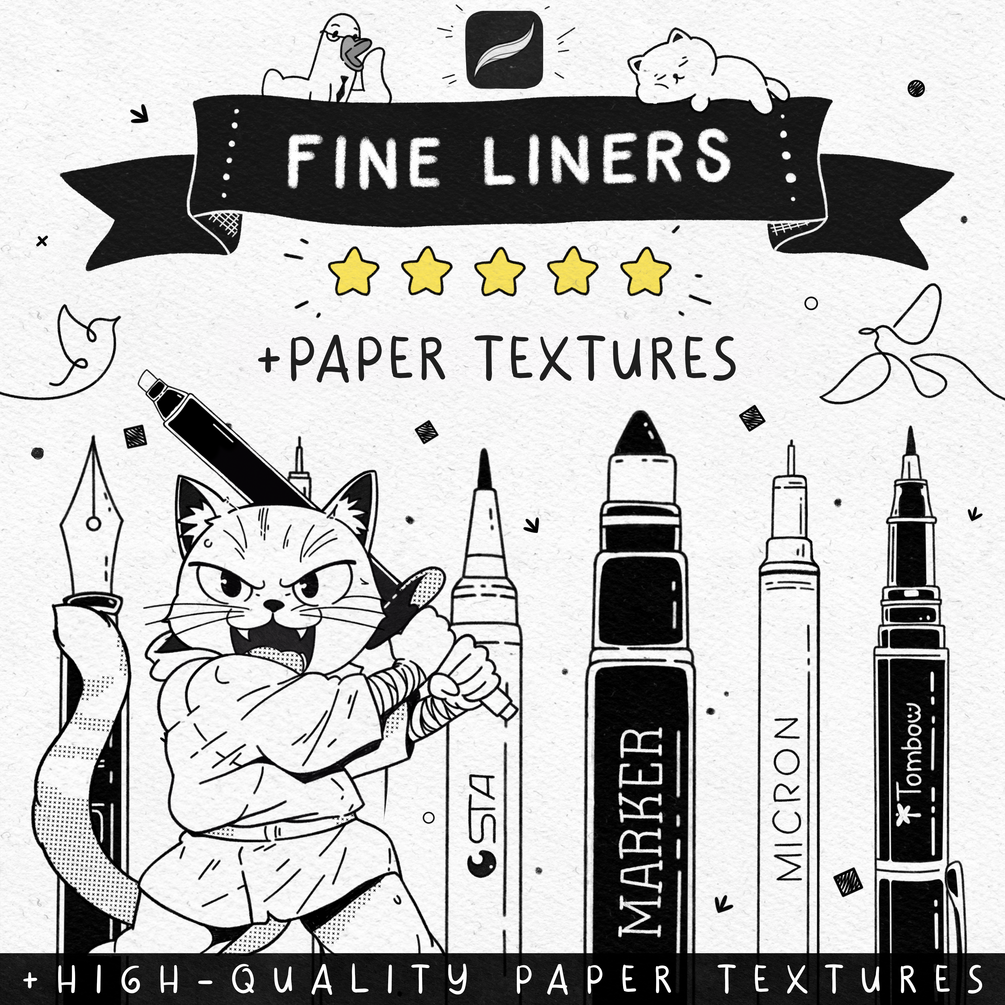 Unlock Your Creative Potential with New Fine Liner Brushes (this free version includes only 30 brushes)! No matter your skill level, this set is designed to be simple and intuitive, making it perfect for artists of all kinds. This perfectly sized fine liner brush set will help you draw cool doodles and detailed illustrations.
