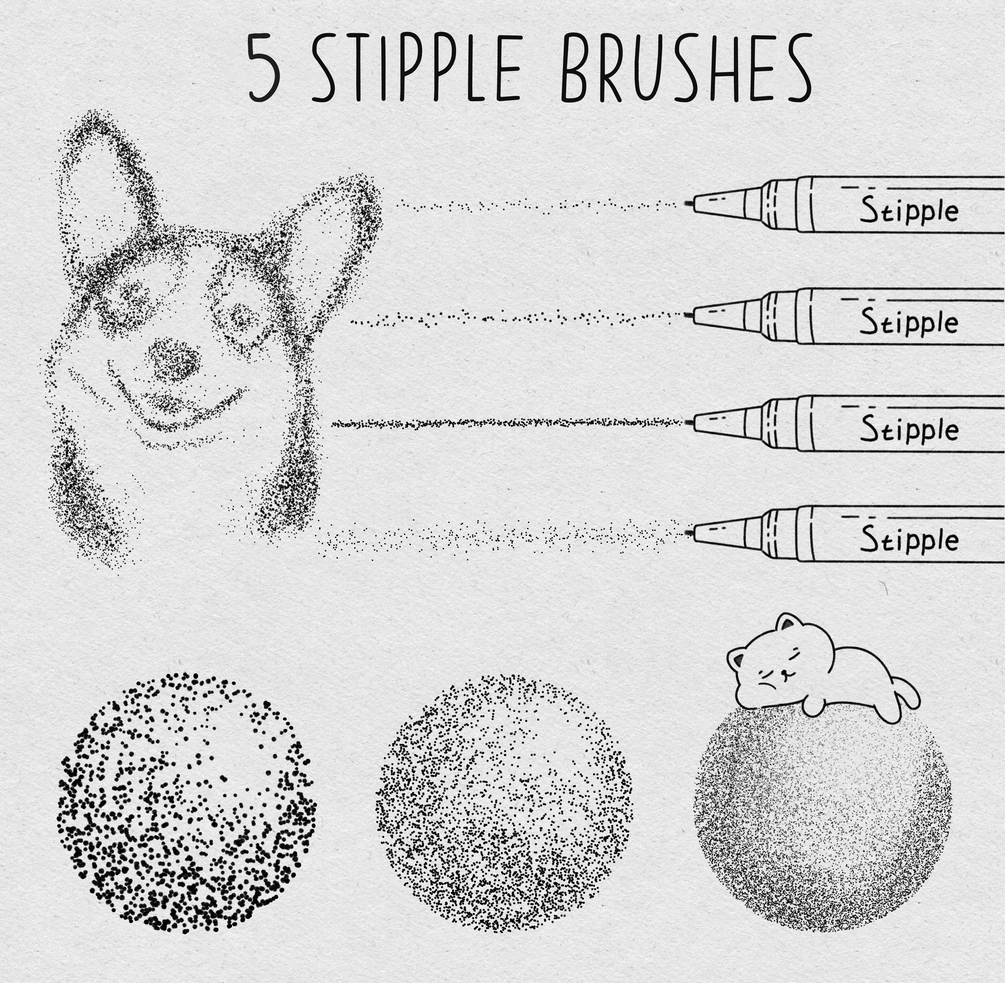 5 Stipple Brushes – Great for adding shadows and creating textured shading effects in your art.