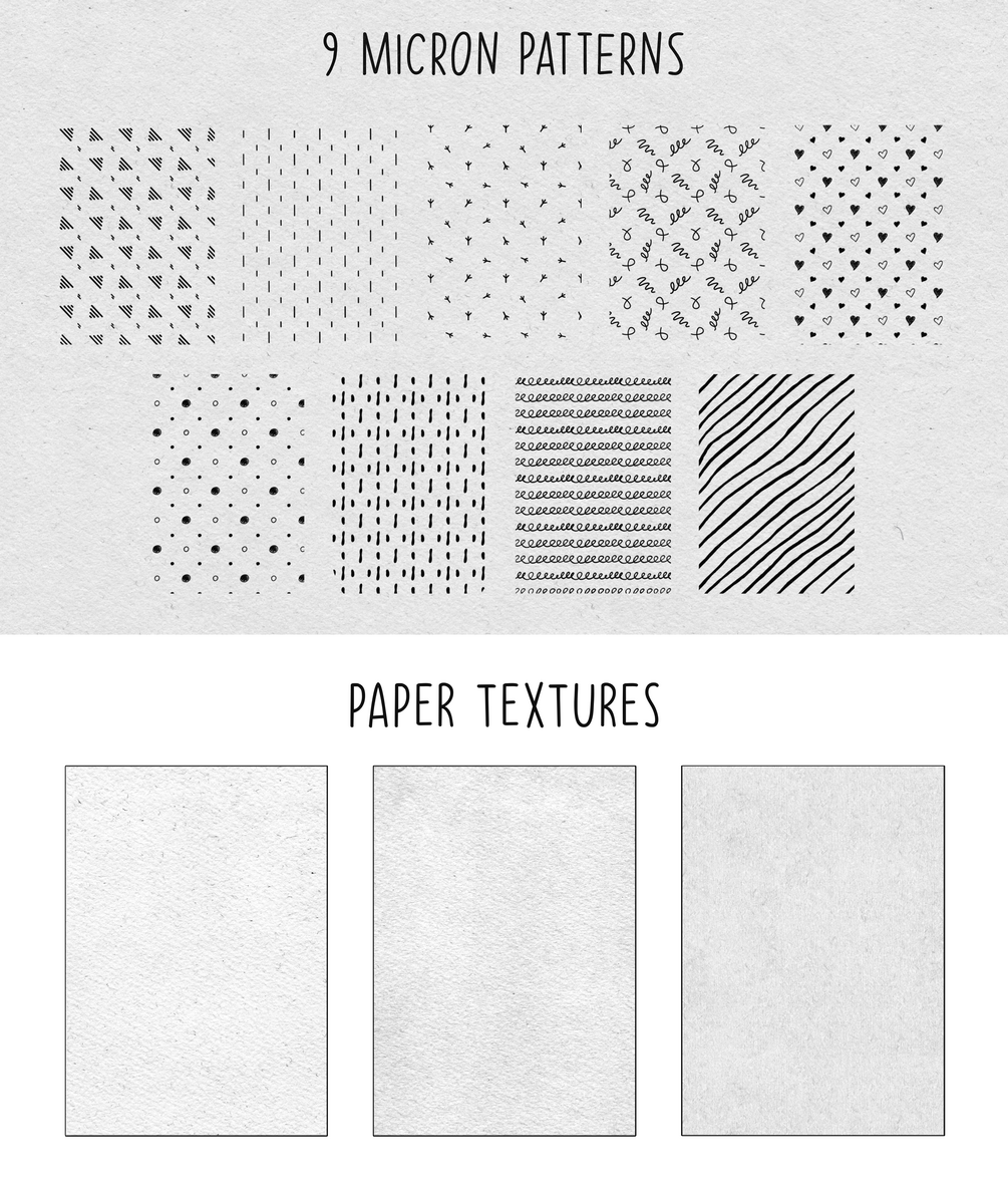 9 Micron Patterns – Seamless, creative patterns that add texture and extra detail to your designs.