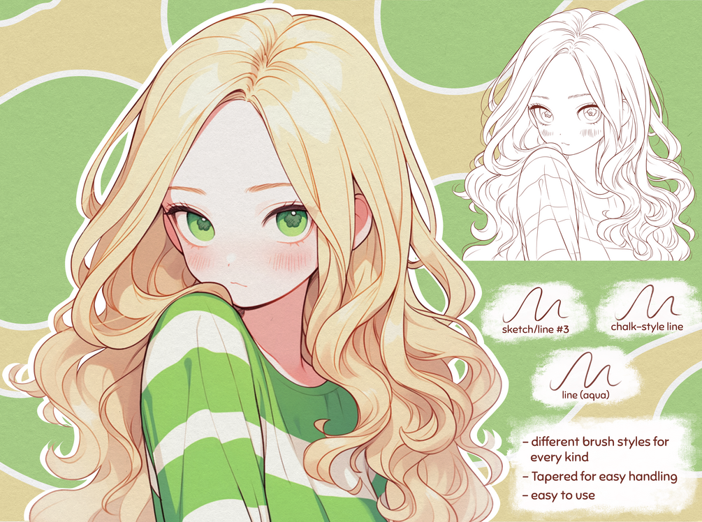 Effortlessly produce beautiful and authentic digital line artworks in Procreate! This collection includes all the essential brushes for both line work and sketching.
