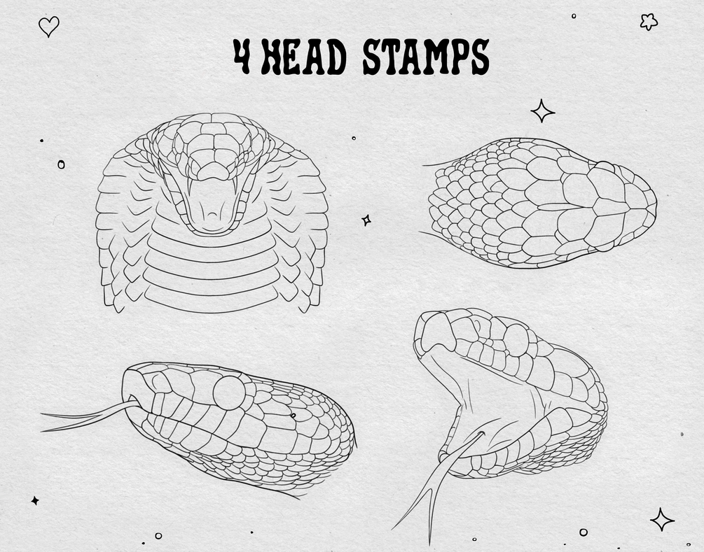 4 ready-to-use snake head stamps will speed up your drawing process. You can use these stamps as ready-made options or as references to craft your own unique snake head.