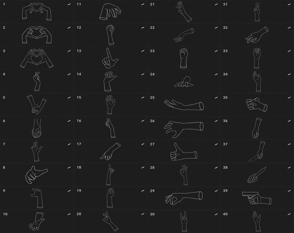 Hands are one of the most difficult parts of the body to draw, many artists in their drawings try to hide the character's hands in his pockets or somewhere else. Especially for you, I have created a set with more than 150 different, expressive and cool stamps that will help you draw hands for your character.