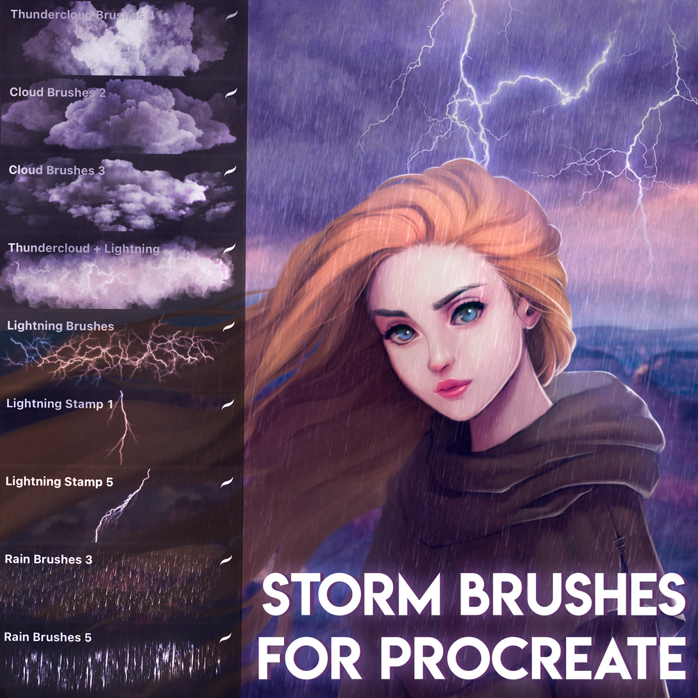 Make your drawing beautiful with these brushes! In this large set there are 25 brushes that will help you draw rain, storm clouds, lightning and so on☔️⚡️ I have invested all my strength and experience to create these brushes. You will like them!⚡️