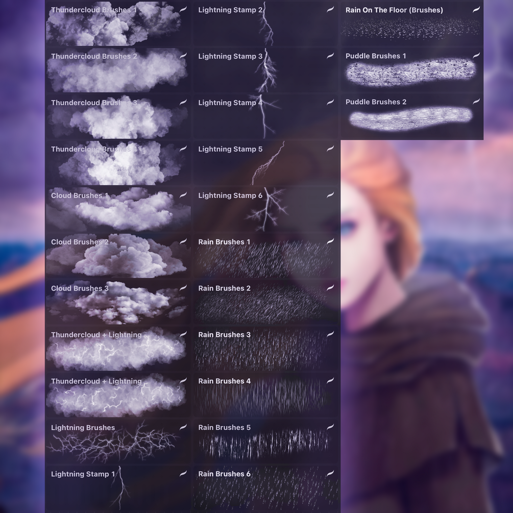 Storm Brushpack (Brush Lightning, Storm clouds, Rain, Puddles and so on) for procreate