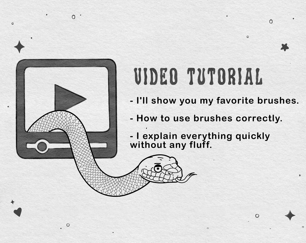 In this video, I'll demonstrate how I draw a snake to help you understand how my brushes work.