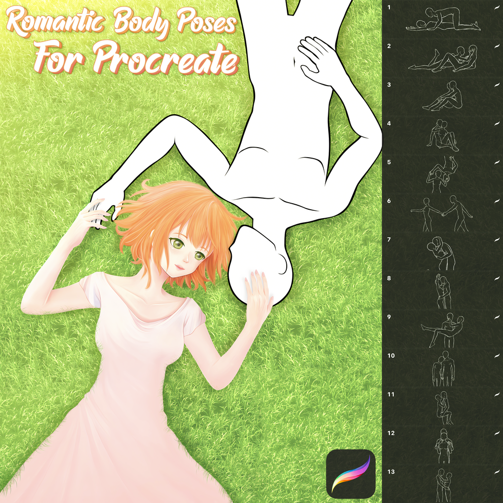 Romantic Body Poses for Procreate, Сouple in love
