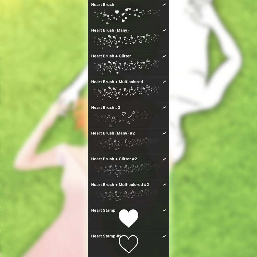 There are 20 romantic poses and 10 heart brushes in this set. This brush set will help you draw different, unusual romantic poses for your characters⭐